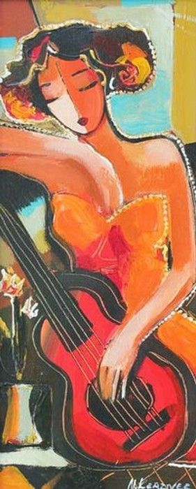 Original Oil on Canvas Handsigned by Michael Kerzner titled "String of Love". Beautifully Museum Framed. Dimensions are 25 X 13.25 Certificate of authenticity provided. Authentic guaranteed! CJRAP44800300