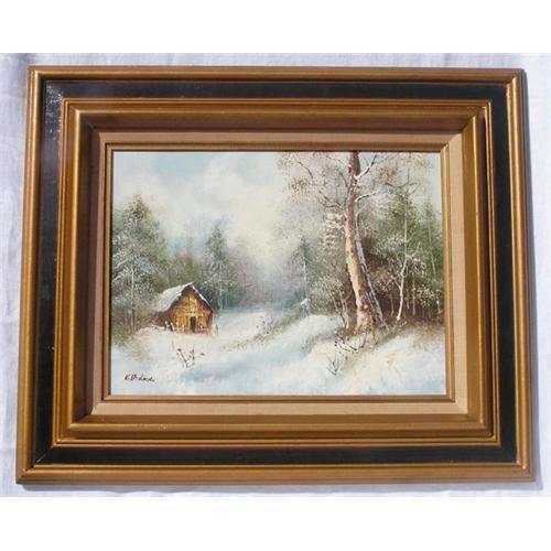 Walking through a winter field you come upon an old barn sitting among the pines. That's the scene this artist has envisioned in this beautiful original oil. Professionally framed this would be at home in any room in your house. The canvas measures 12" by 16" and it frames out at 20" by 24". It was purchased in the 1950's and we bought it at an estate sale. This information was given to us by the original owner.