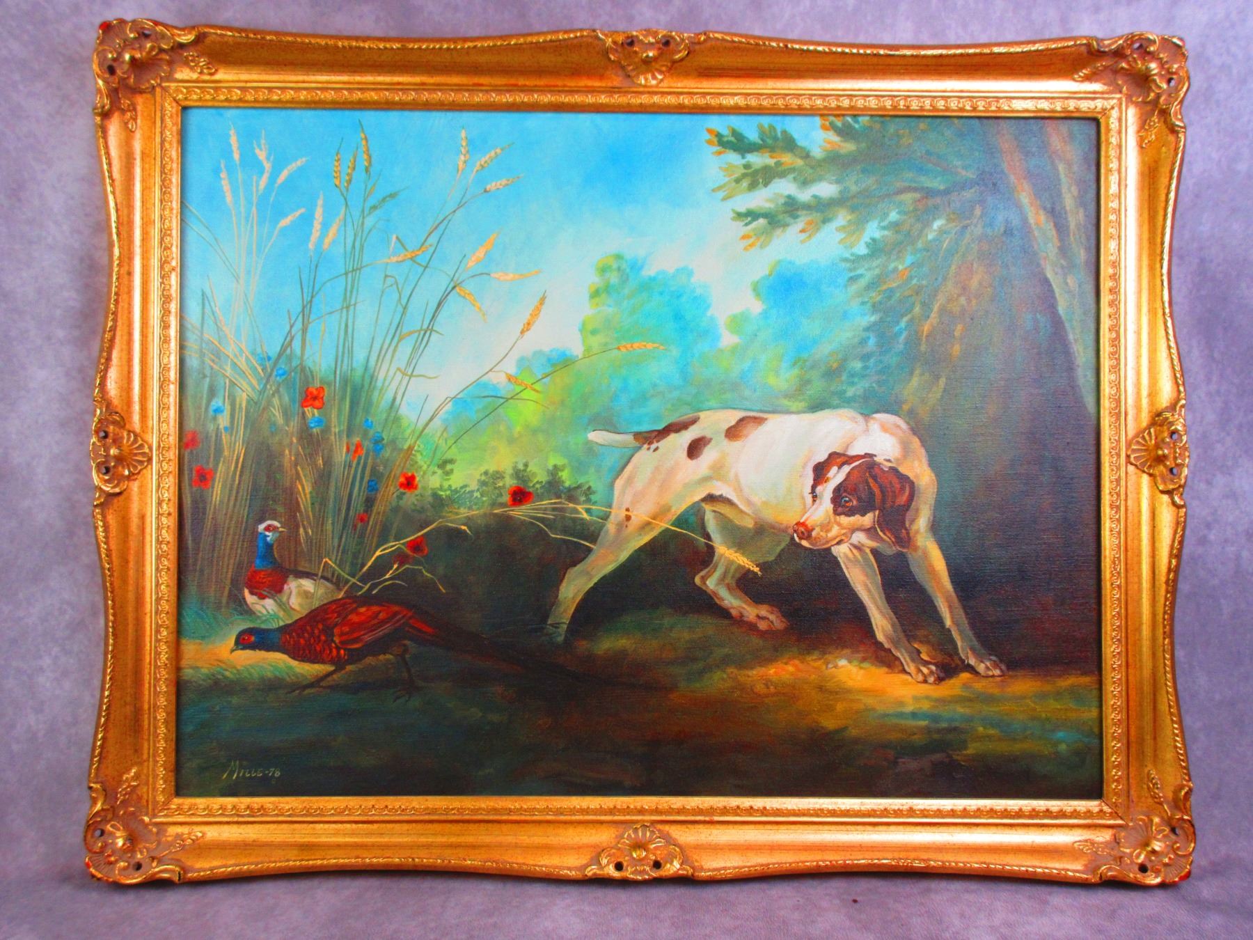 Original Oil Painting Of Hunting Dog And Pheasants- 24" X 18"