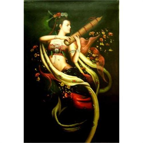 Original art work, oil on canvas titled "The Flutist" Done by a highly skilled artist trained in classical techniques. This particular painting is not stretched or framed. Please note: The photo showing painting framed and hanging is for perspective only. Item is located in US.