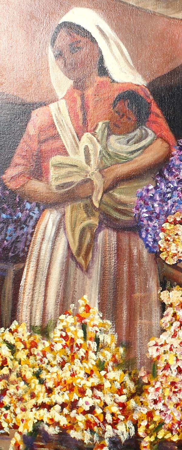 Original Oil Painting by Candace Roll ''My Interpretation of Clark Hulings'', on canvas and measures 20'' x 24'' and is signed by the artist Candace Roll, FYI: ''Clark Hulings (November 20, 1922 - February 2, 2011) was an American realist painter. He was born in Florida and raised in New Jersey. Clark also lived in Spain, New York, Louisiana, and throughout Europe before settling in Santa Fe, New Mexico, in the early 1970s. The travels did much to influence his keen eye for people in the state of accomplishing daily tasks.''