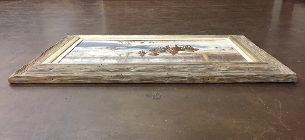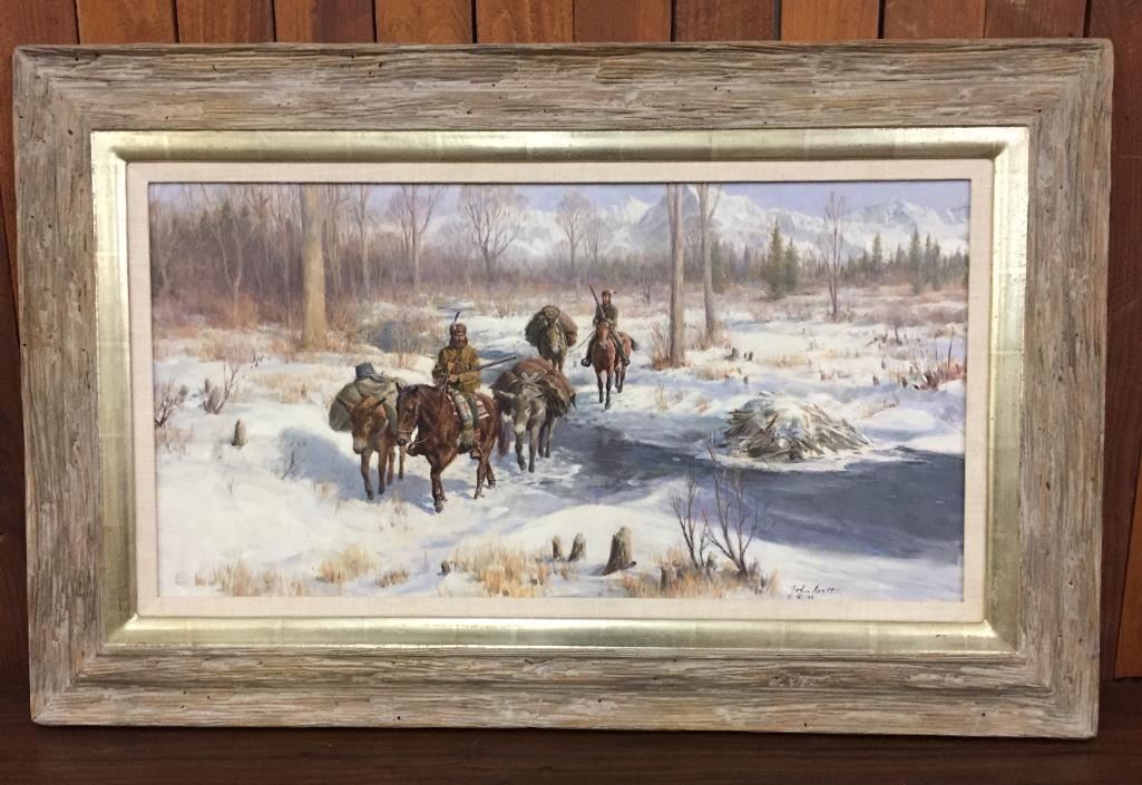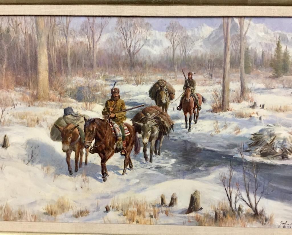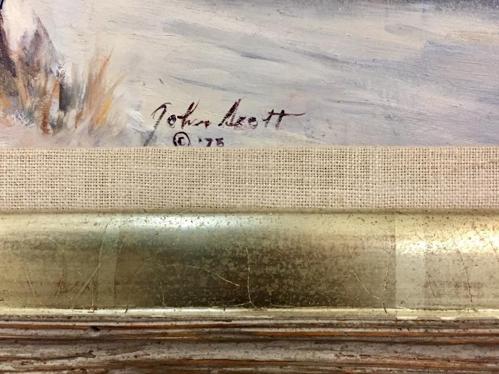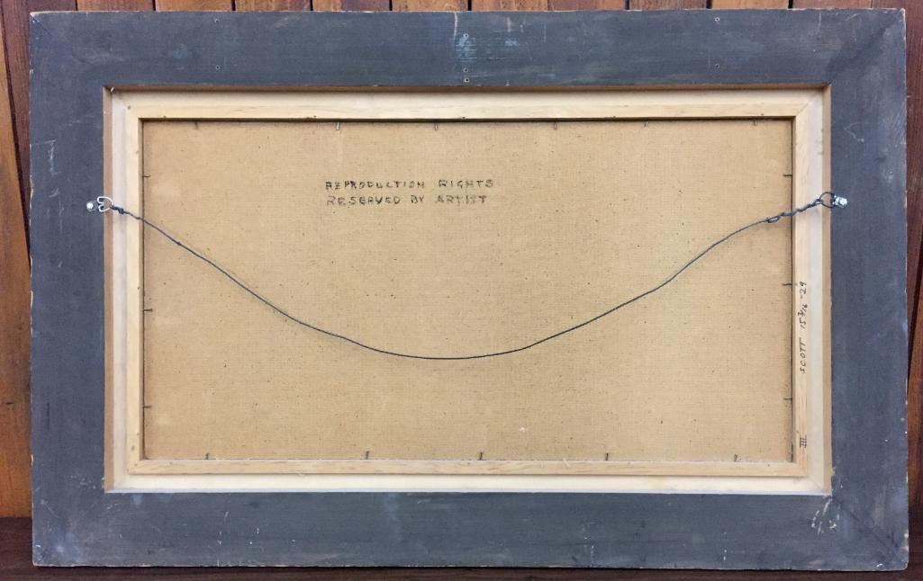 For your consideration we offer for sale this original oil painting by the artist, John Scott, dated 1973. This painting features a mountain man scene from the 1800s. It is in a period frame which shows some stressing (the stressing could be from age or it may have been made that way. See close-up pics). The painting is done on masonite board. John T. Scott was born on a farm in Gentilly, a well known section in New Orleans, Louisiana in 1940. Throughout his many years of life, until his death in 2007, Scott did some remarkable things in the world of art, including being a painter, printmaker, collagist and sculptor. But he is perhaps best known as being a prominent sculptor in his 67 years of life. Scott was known for his vibrant abstract pieces, and his art is displayed throughout many prominent locations. One of these such locations includes his alma matter and a place he spent several years teaching, Xavier University of Louisiana. His sculpture, Ancestral Legacy, is proudly displayed in the courtyard of this campus. Size: Width: 38-1/4" Height: 24-1/2" Please look closely at the pictures - they are an important part of our description. Shipping: There will be a $15 handling / packaging fee for shipping this lot. The actual cost of postage will be added on top of that.