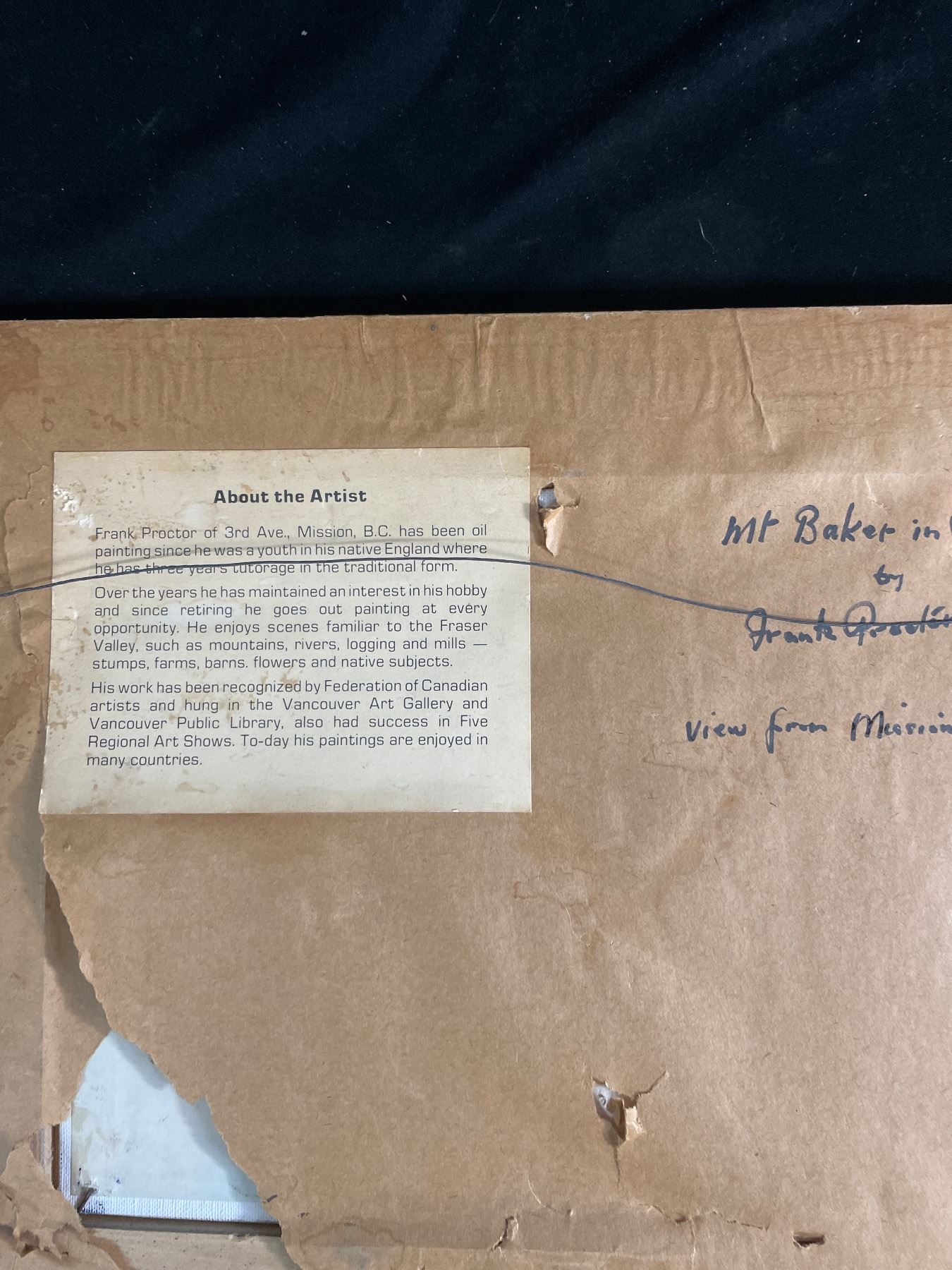 Original Oil Painting by Local Artist Frank Proctor. Painting is Mt Baker