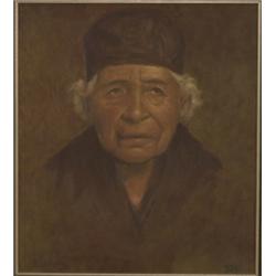 Original Oil Painting on Canvas of an Native Elder Signed DN 19"x 21" Framed Fine Condition