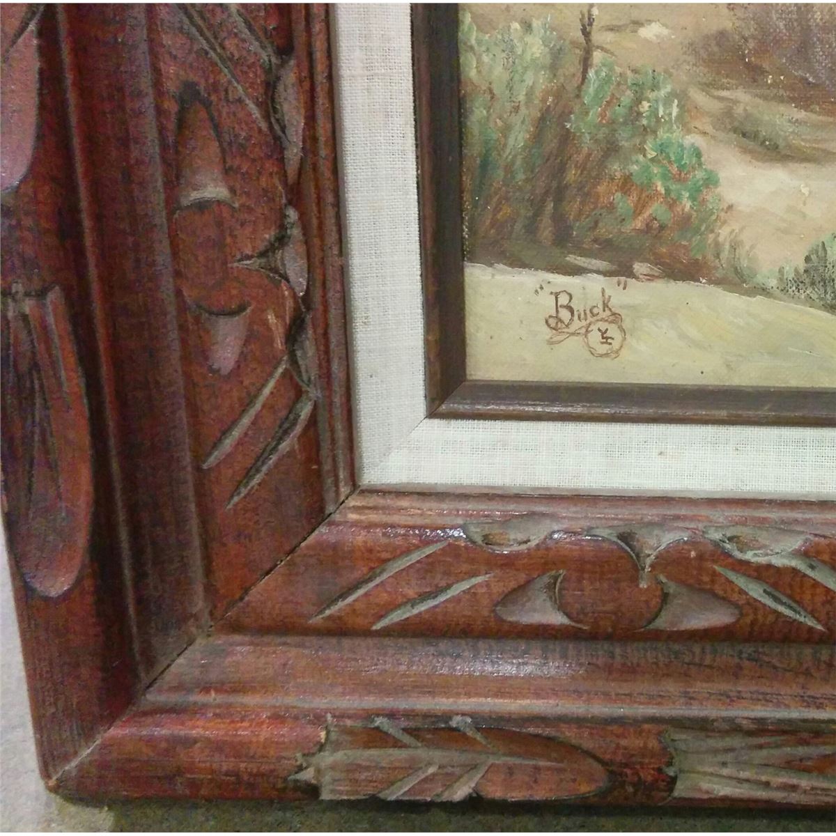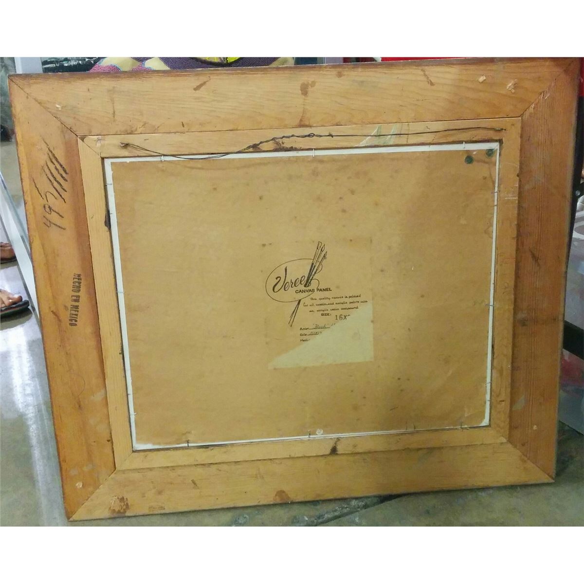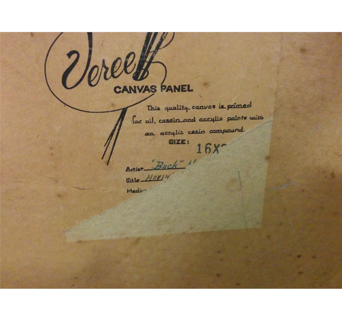 1960's original oil on canvas painting signed by Buck Hensley, San Diego, CA artist. Picture measures 16x20 inches. Artwork depicts a cowboy and his horse in the process of lassoing two bulls. Shipping $32.00.