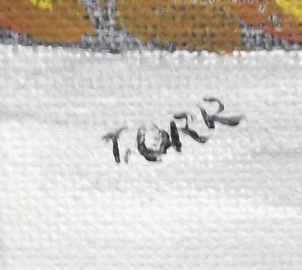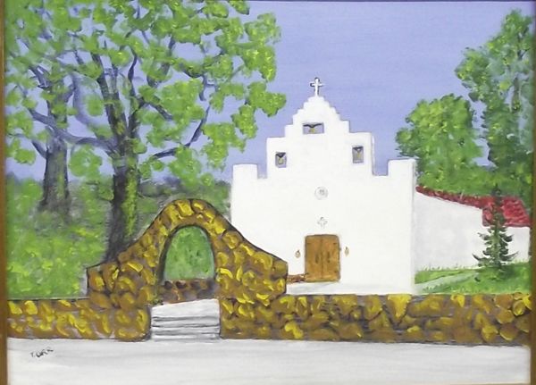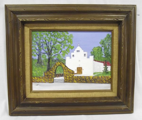 Original Oil ''Tularosa Church'' by Tularosa, NM artist T. Orr of the Tularosa ''Adobe Daubers'', measures 8.5'' x 11.5'', features Catholic Mission Church in Tularosa, NM, wooden frame with burlap matting