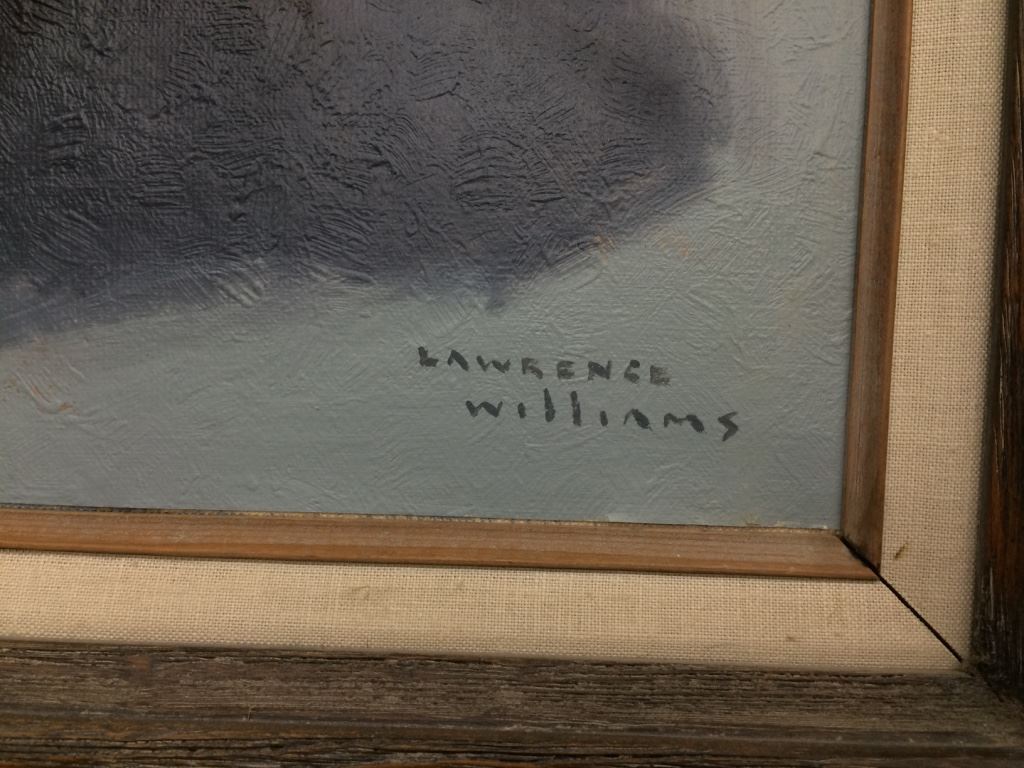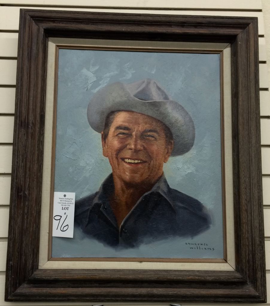 This is an rare original oil painting by presidential portrait painter Lawrence Williams. Signed by the artist in the lower right. Framed in a rustic 24 x 27" wood frame. Williams died in 2003, and was considered a master portrait artist. He was known for his portraits of presidents. There is a small crack / chip spot in the lower left corner of the painting which is barely noticeable, otherwise in good vintage condition. Shipping: There will be a $10 handling / packaging fee for shipping this lot. The actual cost of postage will be added on top of that.