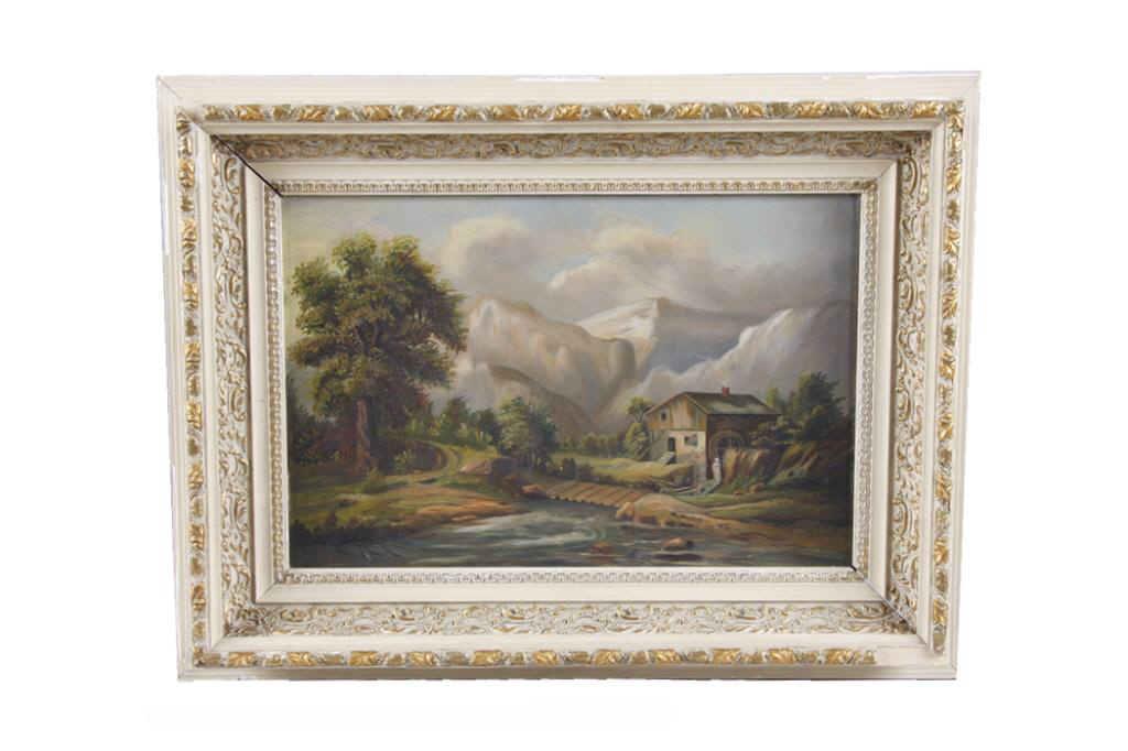 Original Oil on Board Unsigned, depicting Grissmill and Mount Stream, image size is 17 1/2"x12 1/2", in original frame.Unsigned, depicting Grissmill and Mount Stream, image size is 17 1/2"x12 1/2", in original frame.