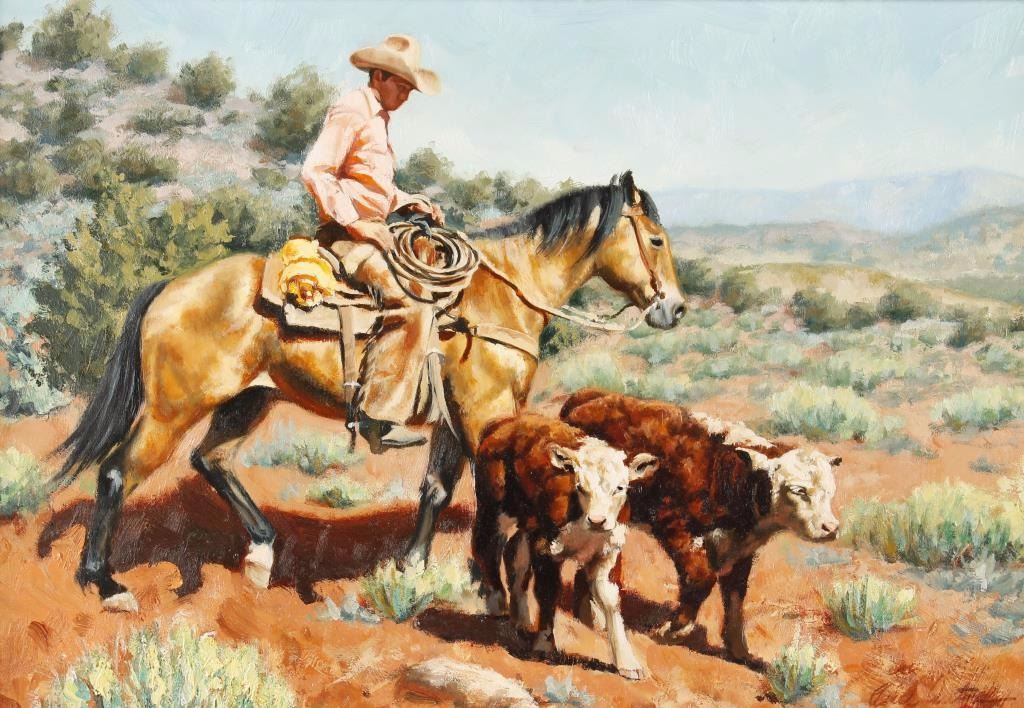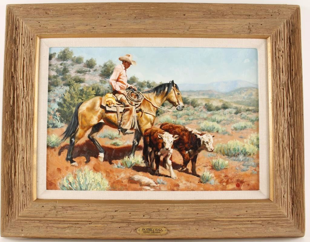 by noted Western artist Bill Anton "Another Year". Signed lower right hand corner and dated 1985. Image size 17"x11". Bill Anton was born in Chicago in 1957, and later moved to Prescott, Arizona. He graduated from Northern Arizona University. Later, after committing to painting full-time, he studied under Michael Lynch and Ned Jacob, who encouraged him to paint from life. Anton's work has been published in Southwest Art, Architectural Digest, Art of the West, Equine Images, Western Horseman and Art-Talk. He was featured on the cover of the April 2006 American Artist magazine. Corporate collections that include his work are Sears, Dupont, State Farm Insurance, Bank of America, Hewlett Packard, and Trust Company of the West. His award winning work has been displayed at the Prix de West at the National Cowboy and Western Heritage Museum, Master of the American West at The Autry Museum, The National Center for American Western Art, The Old West Museum and The National Museum of Wildlife Art. In addition, his work is in the permanent collection of the prestigious Gilcrease Museum.