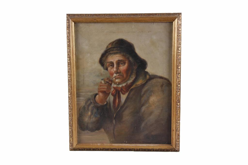 Original Oil on Canvas Depicting a European Gentleman smoking a pipe, unsigned, image size is 14"x19", in original gold frame.Depicting a European Gentleman smoking a pipe, unsigned, image size is 14"x19", in original gold frame.