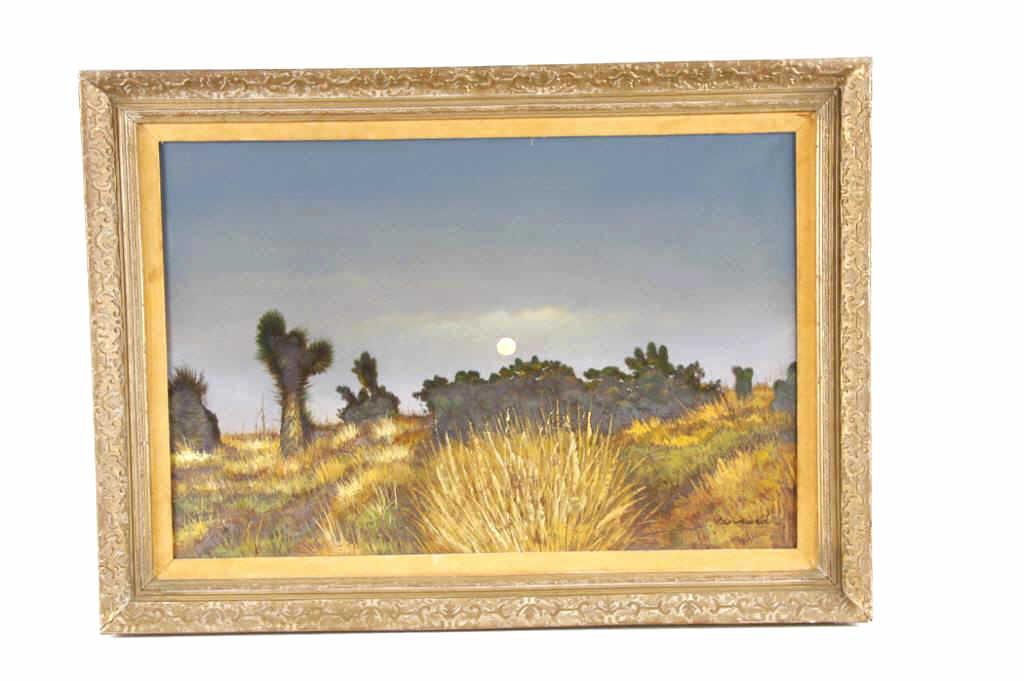 Original Oil on Canvas Signed Bernard Signed lower right hand corner, depicting a landscape scene with low moon, gold gilt frame, image size is 36"x24".Signed lower right hand corner, depicting a landscape scene with low moon, gold gilt frame, image size is 36"x24".