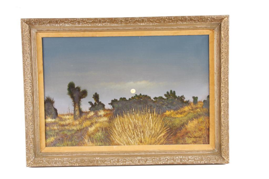 Original Oil on Canvas by Bernard Signed lower right hand corner, depicting a landscape scene with low moon, gold gilt frame, image size is 36"x24".Signed lower right hand corner, depicting a landscape scene with low moon, gold gilt frame, image size is 36"x24".