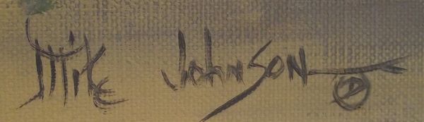 Original Oil on Canvas by Mike Johnson, measures 16''H x 20''W, beautiful earthtone colors, signed in lower righthand corner by artist