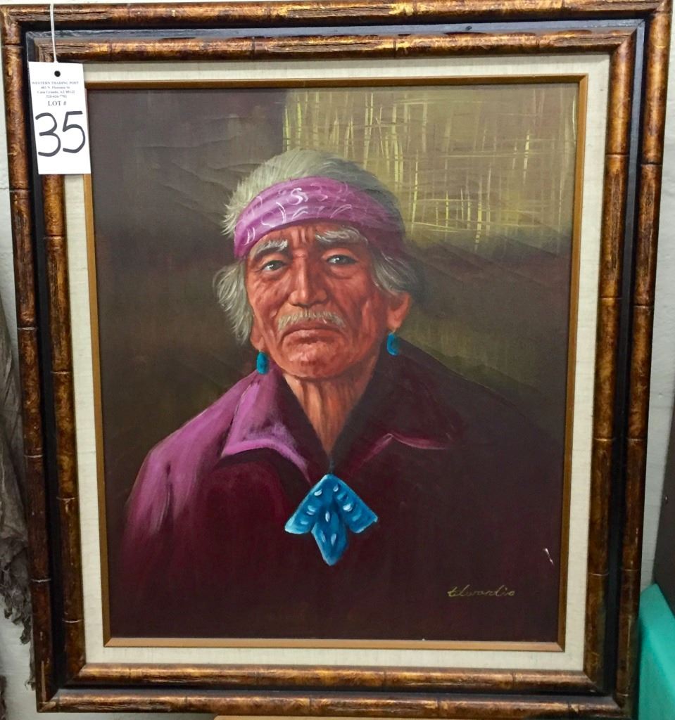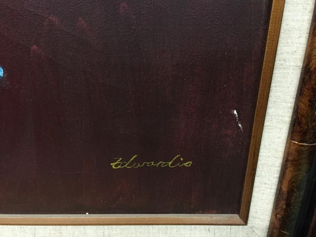 This original oil on canvas is signed Edwardis(?). It measures 26” wide by 30” high including the frame. Good condition (except there appears to be a small scratch just to the right of the artist signature). Please look closely at the pics as they are an important part of our description. Shipping: there will be a $10 handling / packaging fee for shipping this lot. The actual cost of postage will be added on top of that.