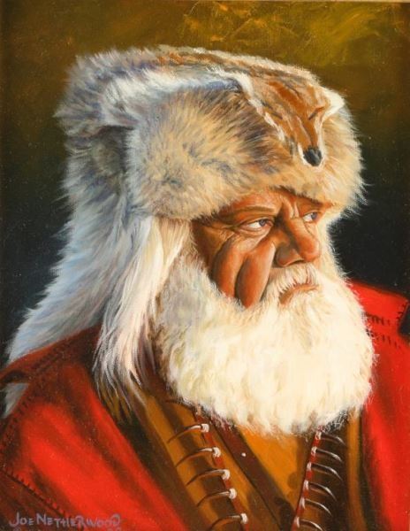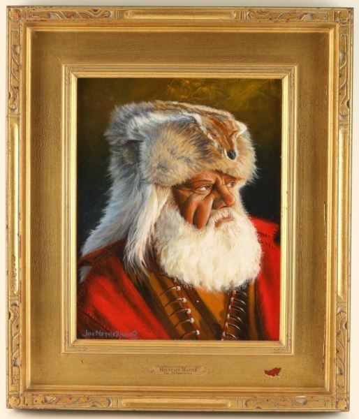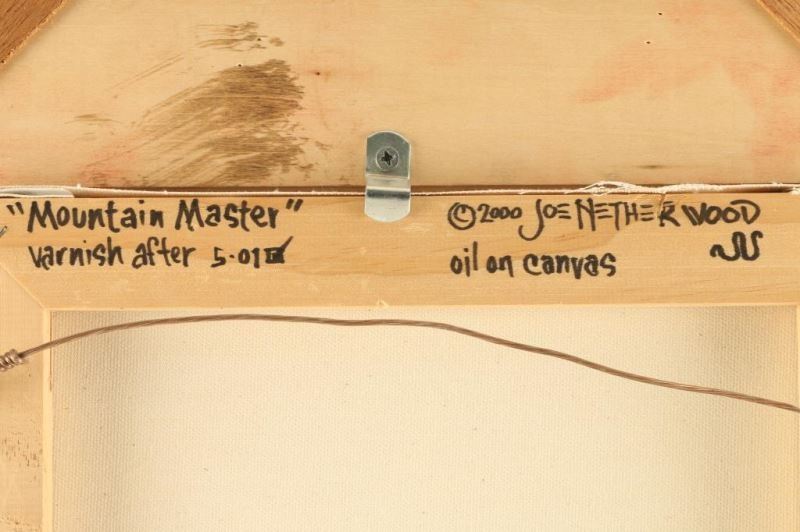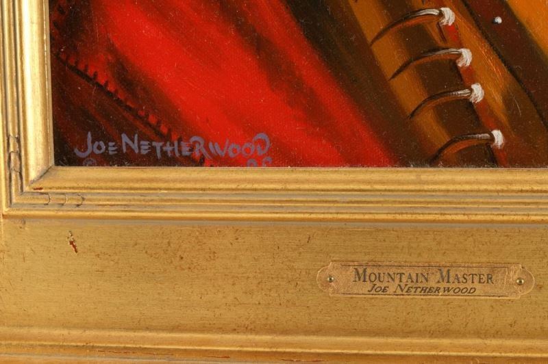 by Joe Netherwood entitled Mountain Master, measures 11"x14" in gold frame. Joe Netherwood (20th century) was active/lived in Arizona. Joe Netherwood is known for Western art.