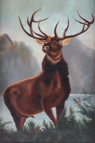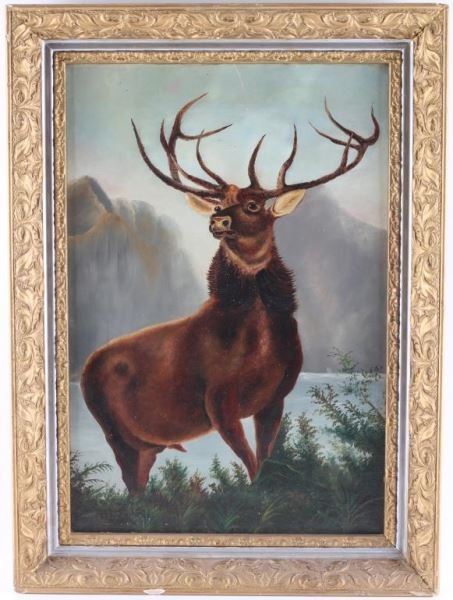 unsigned depicting a Buck, image size 21"x13", in gold frame.