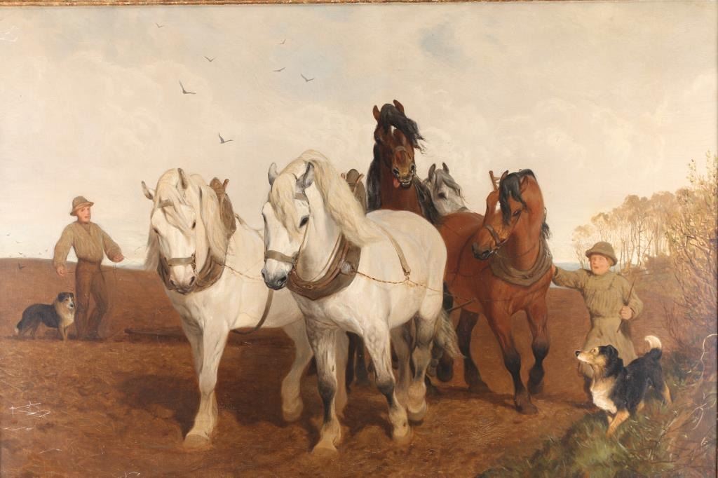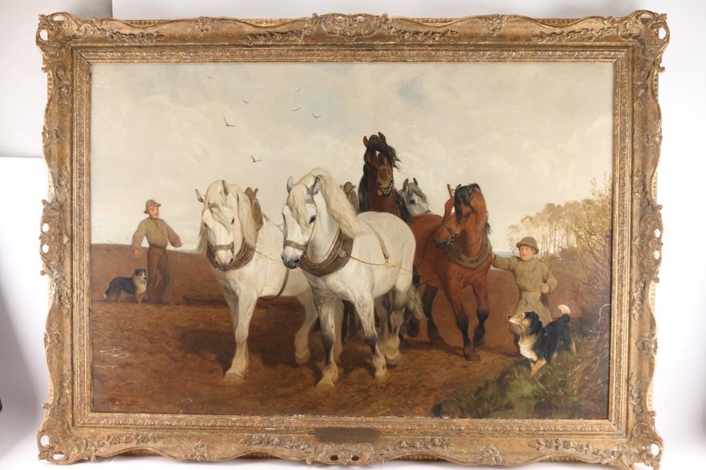 By Rosa Bonheur entitled "Going to the Fair". Measures 43"x29" in period frame. Signed lower right and dated 1875. Rosa Marie (Rosalie) Bonheur (1822 - 1899) was active/lived in United States, France. Rosa Bonheur is known for Animal and western painting.