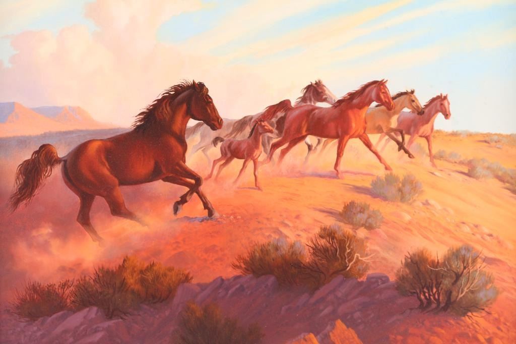 by noted Arizona artist Fred Lucas entitled Wild Mustangs. Measures19.5x15.5".