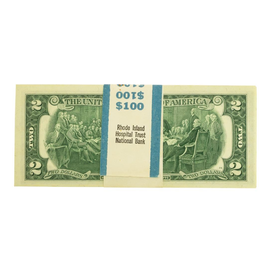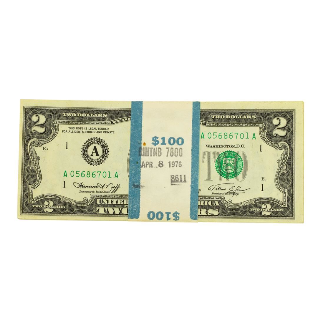 One Original Pack of (50) Consecutive 1976 $2 Federal Reserve Notes Boston.
