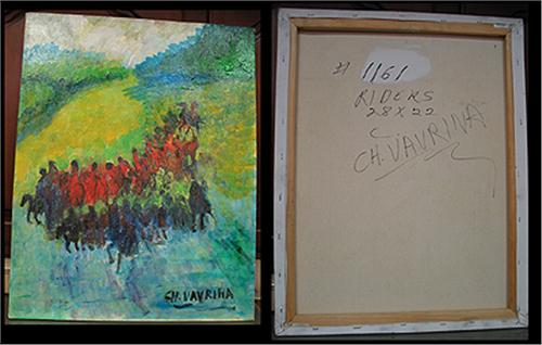 Original Painting Signed by C.H Vavrina entitled Riders. Measures 28" x 22" on canvas, un-framed