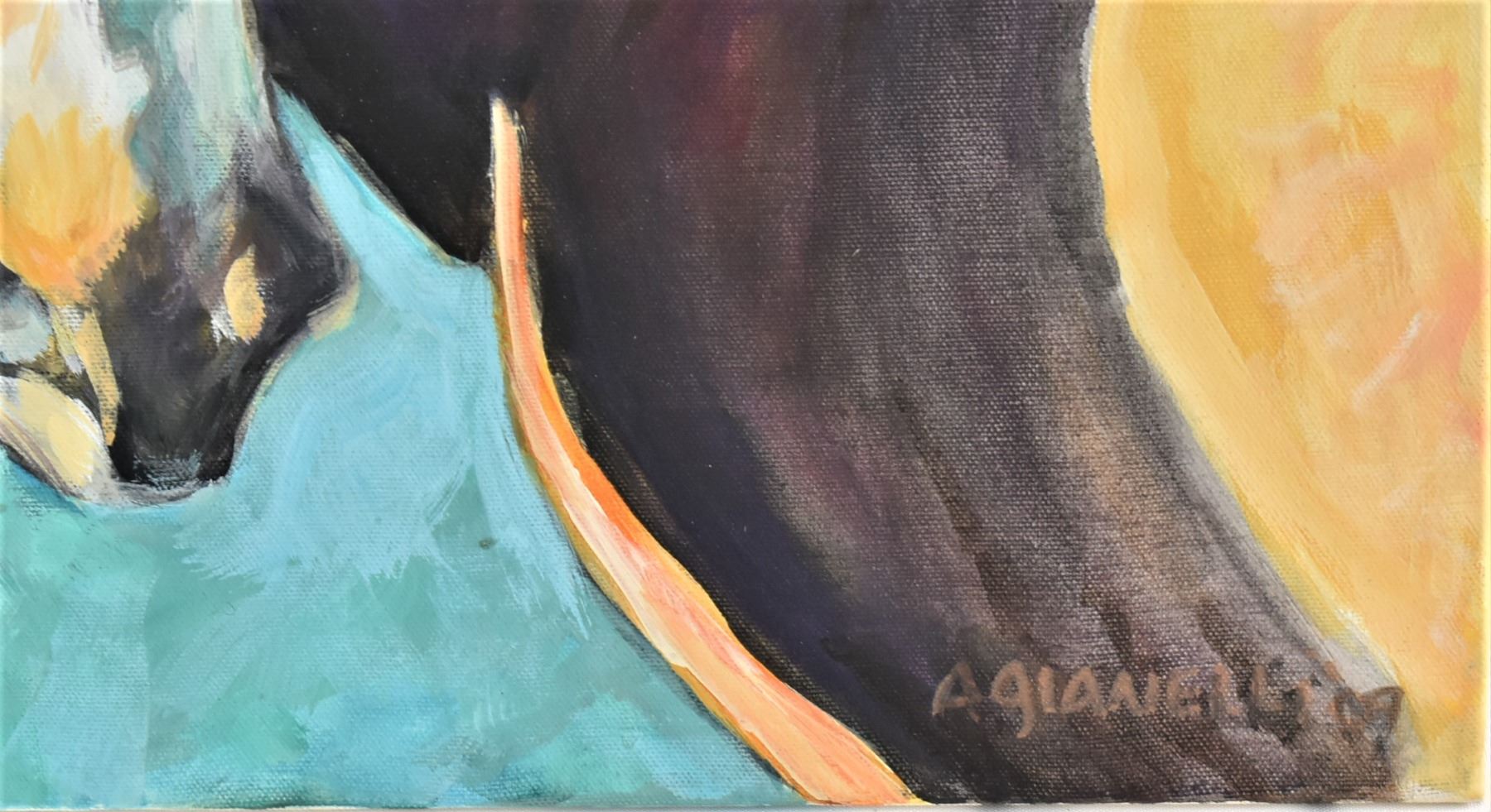 Original Painting by Amelia Gianelli (1943-2019), measures 16'' x 20'' and is signed by the artist, Mimbres, NM artist