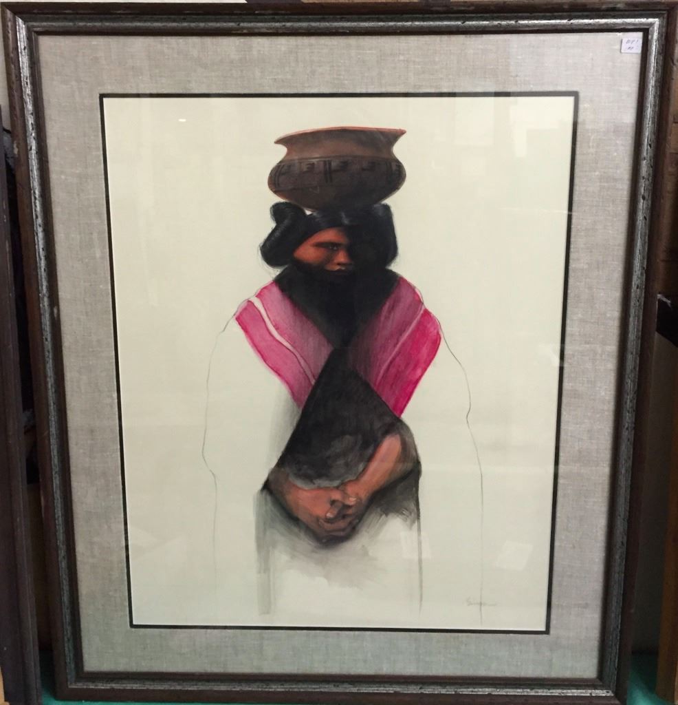 This original artwork is nicely framed and under glass. It measures 30" x 36" including the frame. Please look closely at the pics as they are an important part of our description. Shipping: There will be a $10 handling / packaging fee for shipping this lot. The actual cost of postage will be added on top of that.