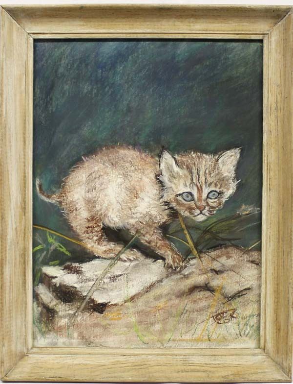 Original Pastel Chalk Bobcat Kitten Picture, Cox