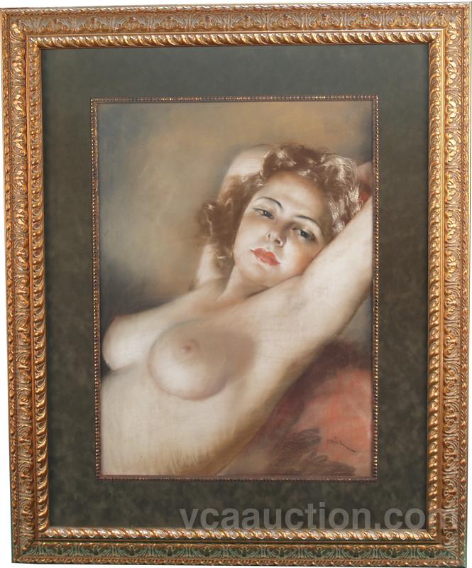 Original Pastel by Pal Freid; Topless Image in Ornate Frame 32" x 39" Subject is the artist's wife