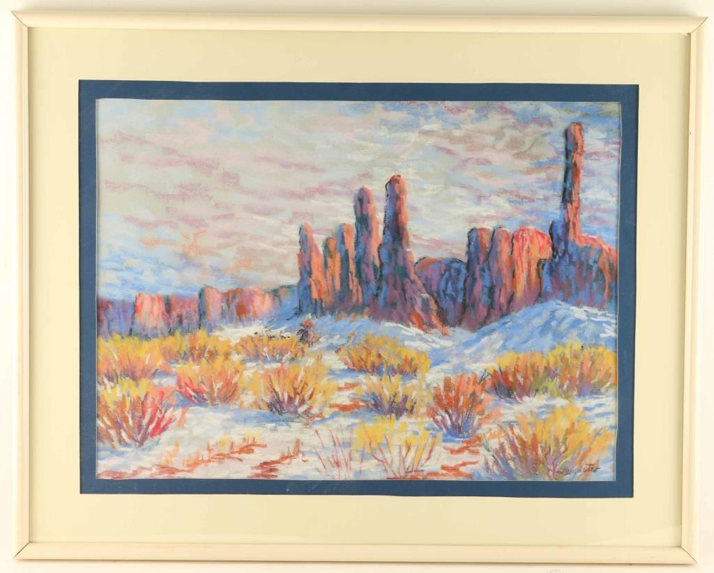 "Snow in Monument Valley" by W. Lomastro, signed lower right. Image measures 16" x 21 3/4" in double mat and wood frame.