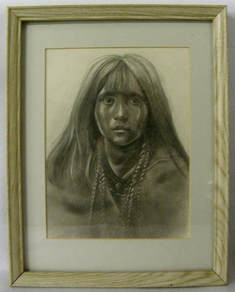 Original Pencil Sketch of Acoma Girl. Visual measures approx. 9.5''Hx7''W. SHI $25.