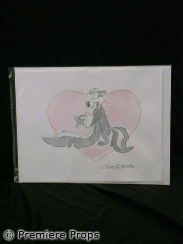 Original Pepe Lepew & Kitty mix media watercolor autographed by Kirk Mueller (approx. 11.5" x 15") (CCBL2021)