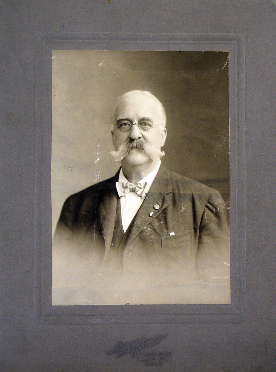 Haseltine, John W. ORIGINAL MOUNTED PHOTOGRAPH. Philadelphia: Lipp Studio, 1228 Market St., 60 N. 8th St., undated [1908 or a bit earlier]. 13.5 by 9.5 cm, mounted on professional backing measuring 20 by 15 cm. A few nicks to the photo's surface, but still near fine. A striking original studio photograph of early American dealer John W. Haseltine. Capt. Haseltine was a Civil War veteran who became active in the hobby in 1867, soon afterwards becoming a dealer. See catalogue for full description.