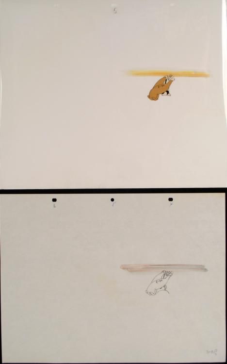 Even though there is no absolute sense of continuity in the stories, certain plot and presentation elements remain mostly constant, including purposeful contradictions in Popeye's capabilities. Though at times he seems bereft of manners or uneducated, * Popeye is often depicted as capable of coming up with solutions to problems that (to the police, or, most importantly, the scientific community) seem insurmountable. Popeye has, alternatively, displayed Sherlock Holmes-like investigative prowess (determining * for instance that his beloved Olive was abducted by estimating the depth of the villains' footprints in the sand), scientific ingenuity (as his construction, within a few hours, of a "spinach-drive" spaceship), or oversimplified (yet successful) diplomatic * argumentation (by presenting to diplomatic conferences his own existence --- and superhuman strength --- as the only true guarantee of world peace). Popeye's pipe also proves to be highly versatile. Among other things, it has served as a cutting torch, jet * engine, propeller, periscope, and, of course, a whistle with which he produces his trademark toot. Popeye also on occasion eats spinach through his pipe, sometimes sucking in the can itself along with the contents. * * * * * **The cel and drawing are from the 1950's Popeye television show series. * * * * Don't worry, this is how Popeye likes to unwind after a long day worth of work... * * * Original Production Animated Cel and Drawing * Original "rough" animation drawing, in black and red, with notations in black. * Overall Size of Drawing: 11 3/4" x 15 1/2" * Overall Size of Cel: 13" x 15 1/2" Excellent Condition * This is an original hand-painted cel set-up used in the production of an episode of "Popeye." Each one-of-a-kind set-up represents a slight change in position of the characters. When individually photographed and projected in rapid succession, the images * appear to move. * * To create production cels, the original animator's drawing is transferred onto an acetate cel (by hand-inking and/or photo copying). The cel is then hand-painted on the reverse side. * * * * * The cel and drawing received by the winning bidder my every so slightly be different from that in the auction photo. * * * * The cel and drawing are ready to be matted and framed. The animator's notations are at the top of the cel and top and bottom of the drawing. * * *