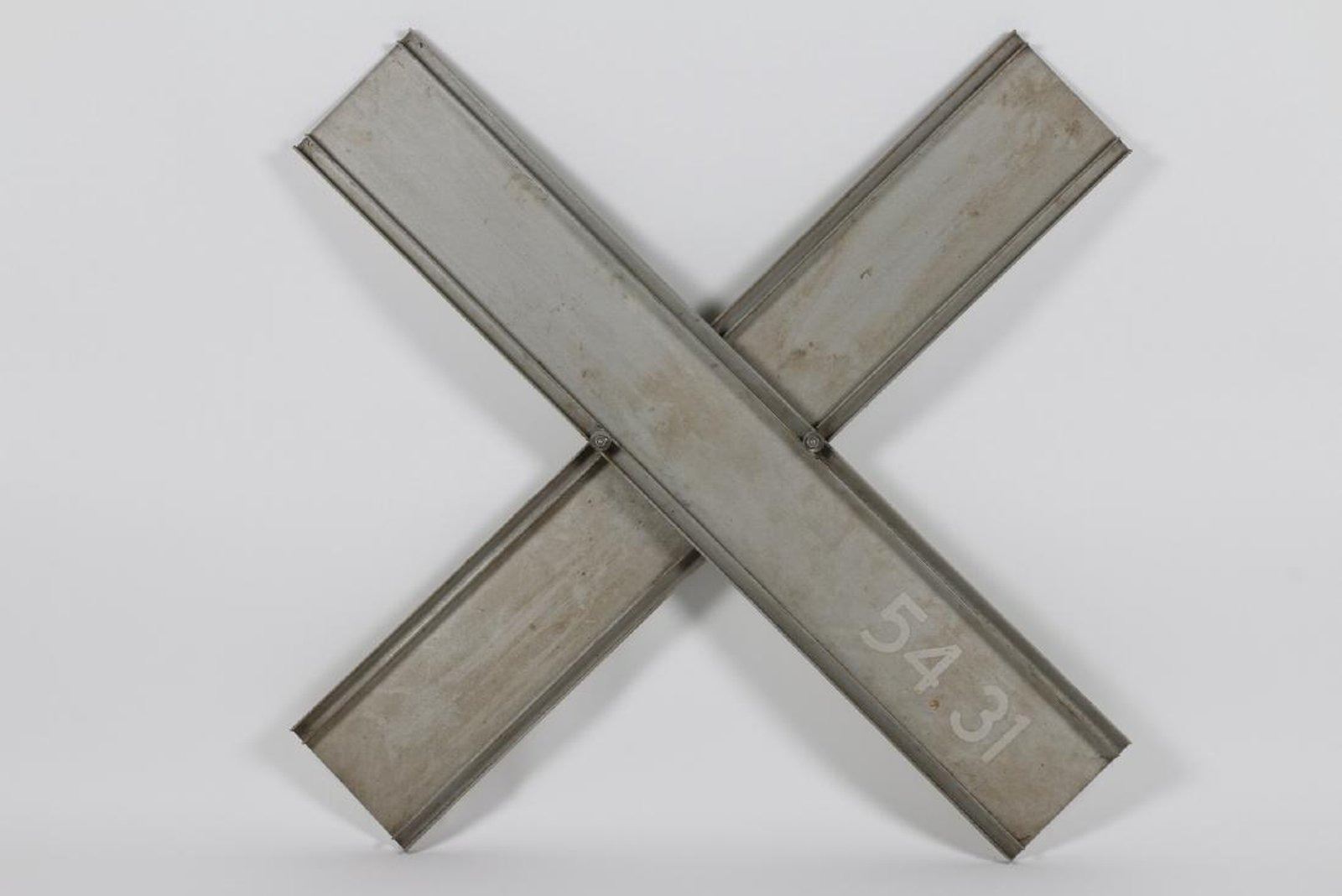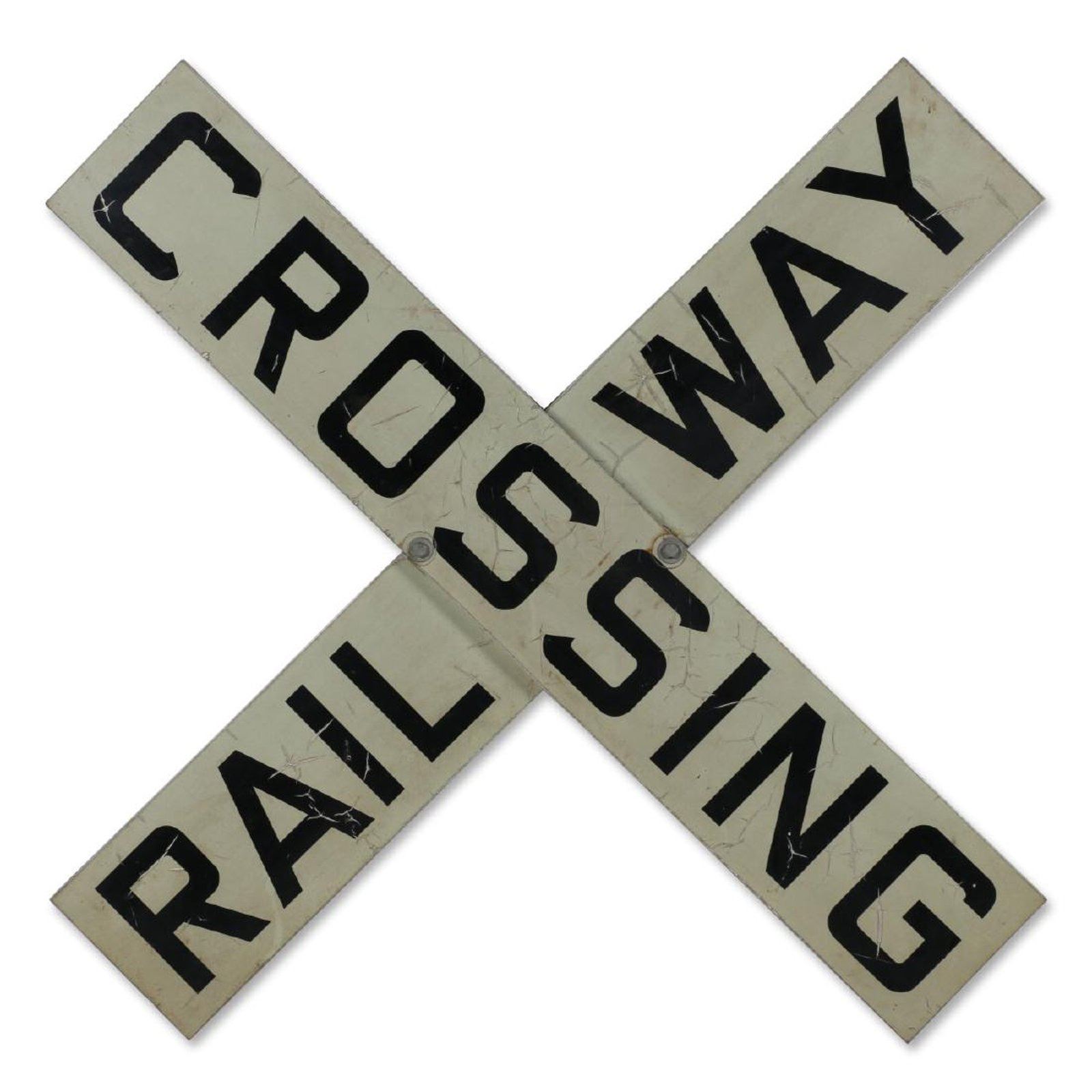 4' x 4' Railway Crossing Sign. Early aluminum with applied decal. Great Condition: Complete and original.