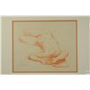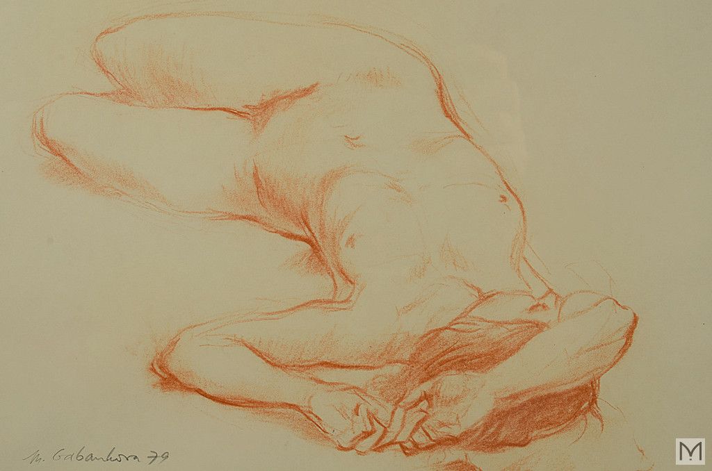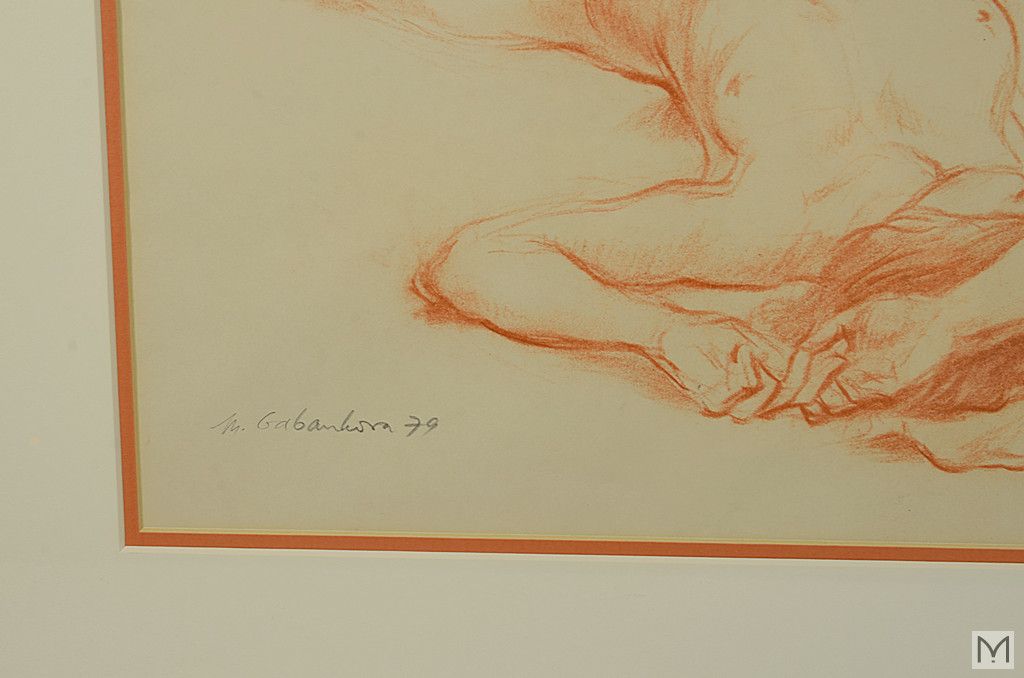 Original Red Chalk Drawing - Figure Study 'Reclining Nude' Signed Maria Gabankova (Czechoslovakian/Canadian) Framed under glass, wood frame. Signed, '79.