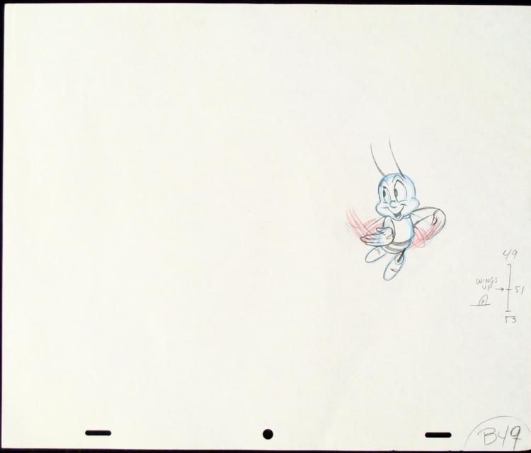 Commercials for the Cheerios have been a mainstay of Saturday morning cartoon programming for many years. They generally depict the mascot tempting a hapless child or adult with a sparkling bowl of Honey Nut Cheerios, and their attempts to compete for * it. This is an original animation drawing from the production of the Cheerios commercial. * * Come right this way... * * Original "rough" animation drawing in black, non-photo blue, and red pencil with the notations in blackCel size: 10 1/2 x 12 1/2 inchesCondition: ExcellentTraditional animation is a multi-step process which includes various types of art techniques. Drawings are a key part of the process, in which the animator creates the design and movement of * the characters. Drawings are then transferred onto acetate cels (by hand-inking and/or photo copying) to create a production cel, which is then hand painted on the back side, using paint colors chosen and approved by the creator of the series. * The drawing is ready to be matted and framed. The animators notations are located at the bottom of the drawing.