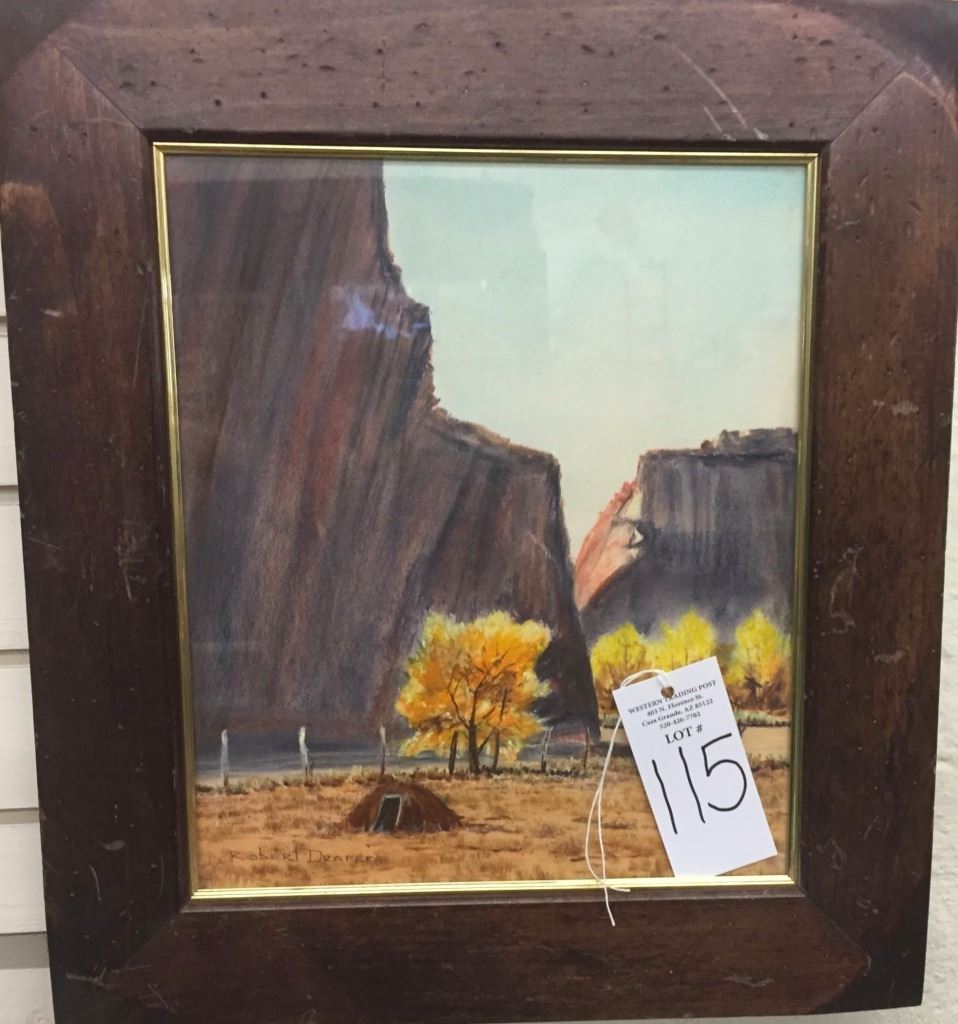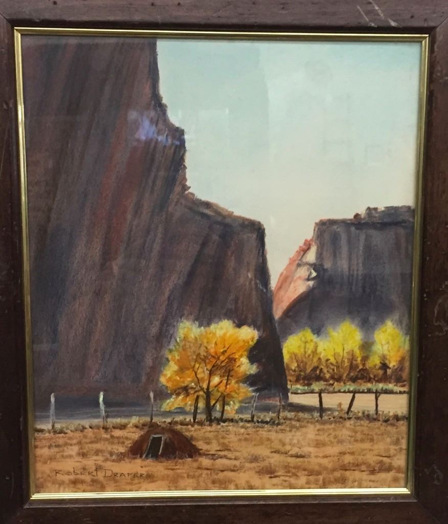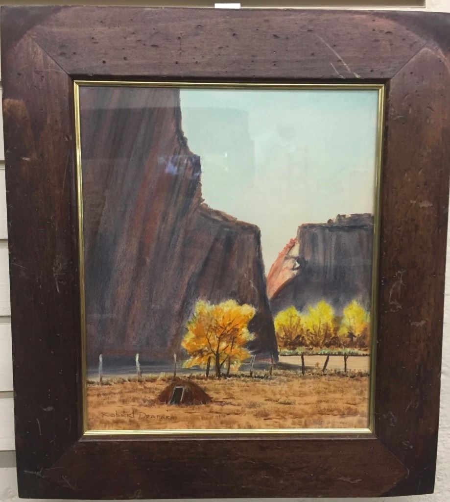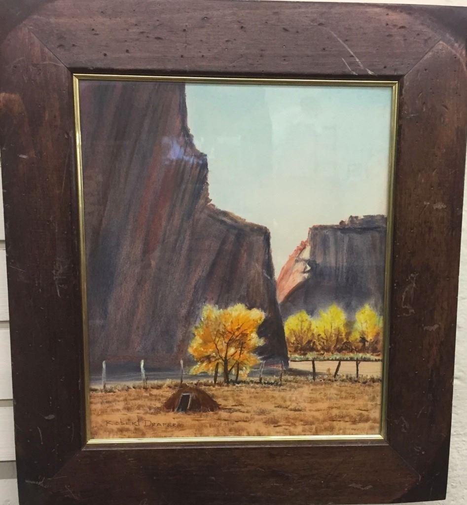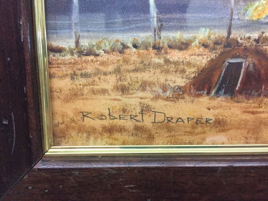 Maker: Robert Draper, Navajo, Hopi, Laguna (1938 - 2000). Approx. Age: Circa 1970s. Size: 16” X 18” including the frame. Condition: Good. Additional Info: Well-known artist. Please look closely at the pictures - they are an important part of our description. Shipping: There will be a $10 handling / packaging fee for shipping this lot. The actual cost of postage will be added on top of that.