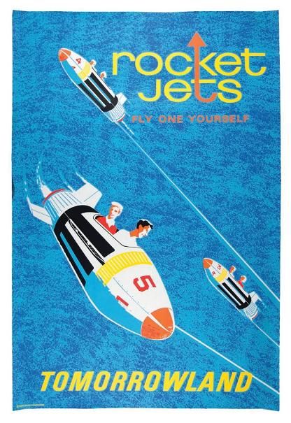(Disneyland, 1967) A stunning original color silk-screened poster for the Disneyland Rocket Jets attraction. Measuring 36 x 54 in. with bright and vivid colors and striking imagery. In vintage fine condition.