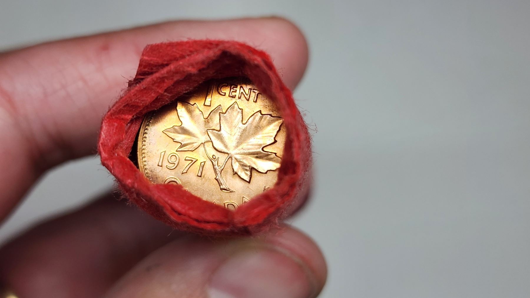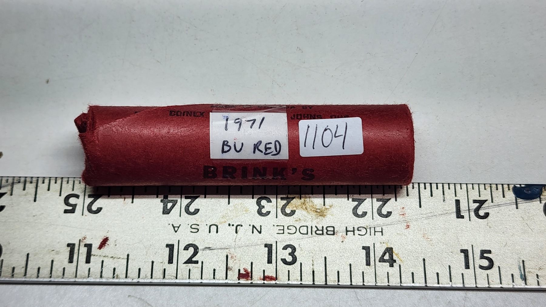 Original Roll of 50 1971 Canadian Small Cents. As issued in Brink’s wrapper. One 1971 1c in MS-66 Red is worth $60.