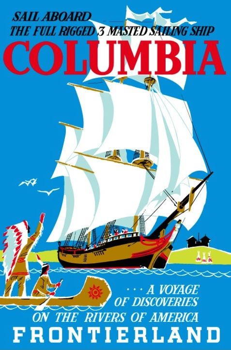 (Disneyland, 1958) A stunning original hand-silkscreened color poster for the Disneyland Sailing Ship Columbia attraction. Measuring 36 x 54 in. with bright and vivid colors and striking imagery. In vintage fine condition. Unexamined out of frame.
