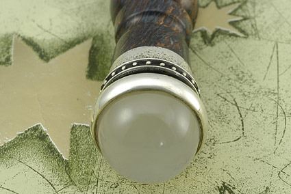 Handle: Stabilized spalted oak with a Brazilian star quartz set in the pommel