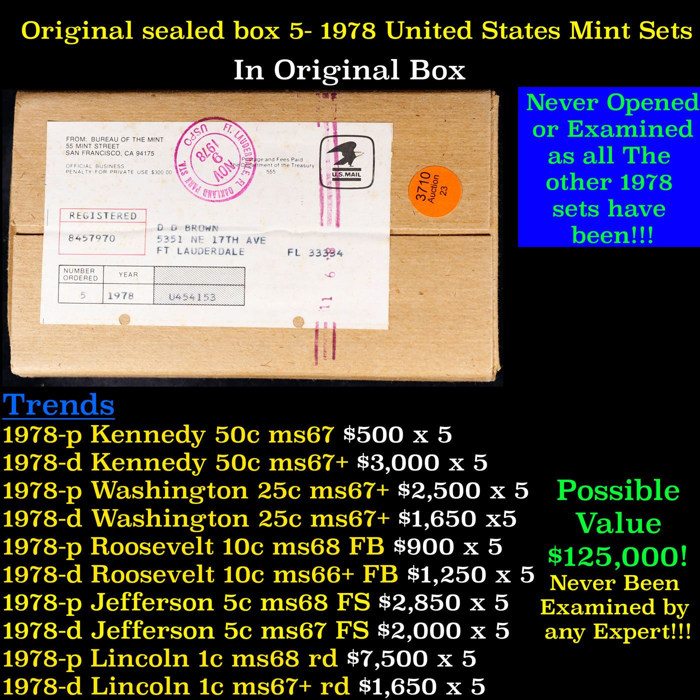 Original Sealed Box 5-1978 Mint Sets. Original Sealed mailer box contaning 5 1978 Mint Sets Never Before Opened