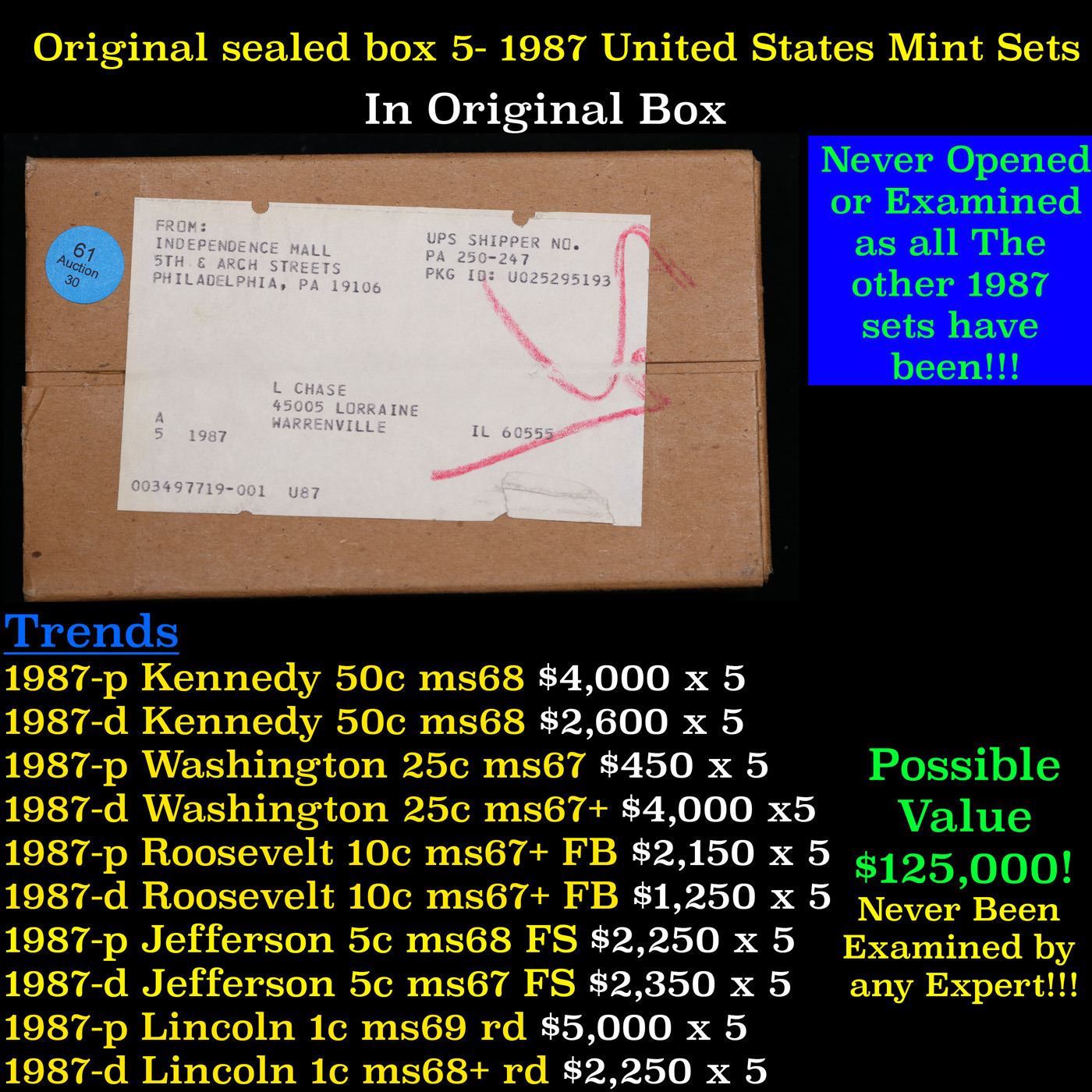 Original Sealed Box of 5-1987 Mint Sets. 1987 UNITED STATES MINT YEAR SETS ORIGINAL SEALED GOV PACKAGING - 5 SETS IN BOX