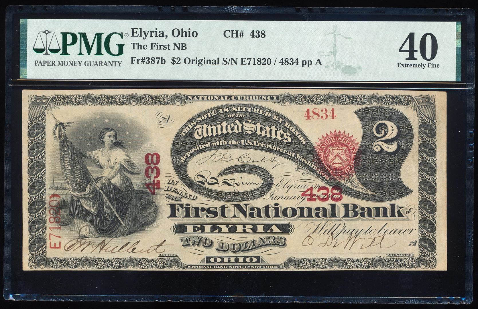 Original Series $2 Lazy Deuce Elyria, OH CH# 438 National Note PMG Extremely Fine 40