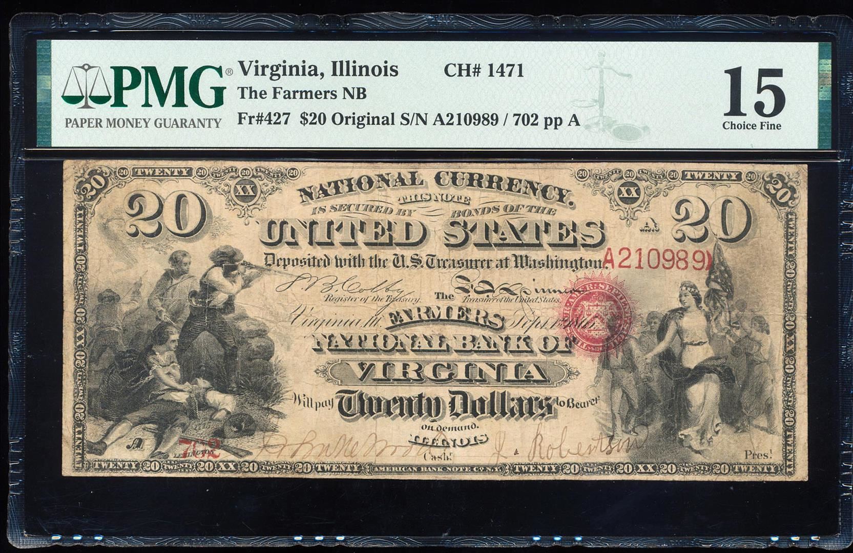 One Original Series $20 Virginia, IL CH# 1471 National Bank Note PMG Choice Fine 15. PMG Certified.