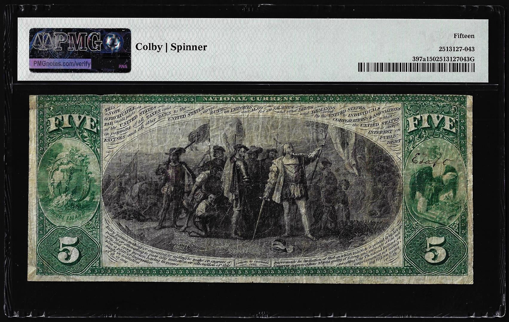 One Original Series $5 The National Globe Bank of Woonsocket, Rhode Island Fr.397a CH# 1423 National Note PMG Choice Fine 15. PMG Certified.