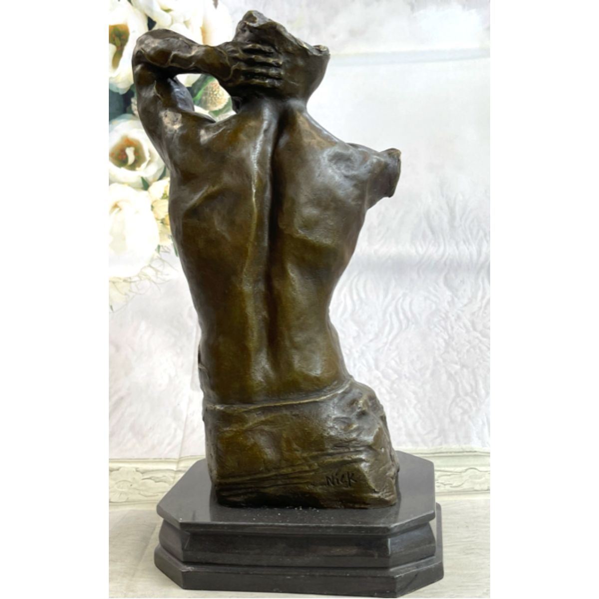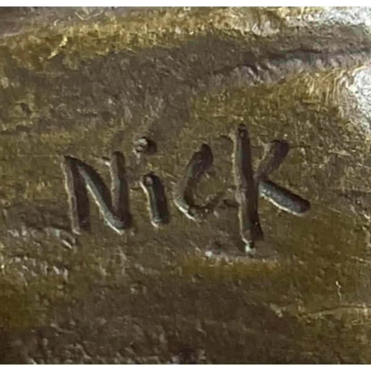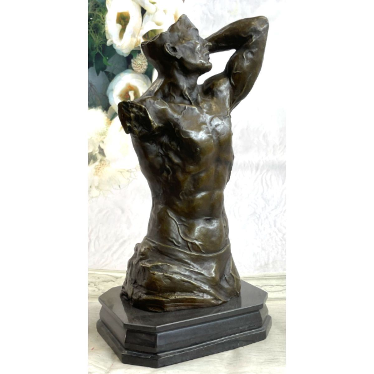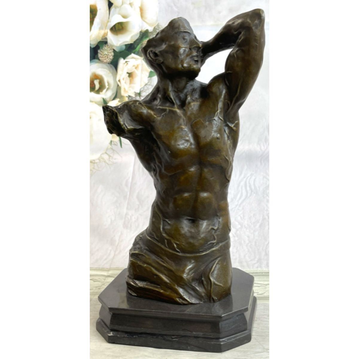 Original creation, male torso sculpture, signed by the artist, Nick. Lost wax casting method bronze, with brown patina, mounted on a marble base. 14 1/2" H x 9" W. 12lbs.