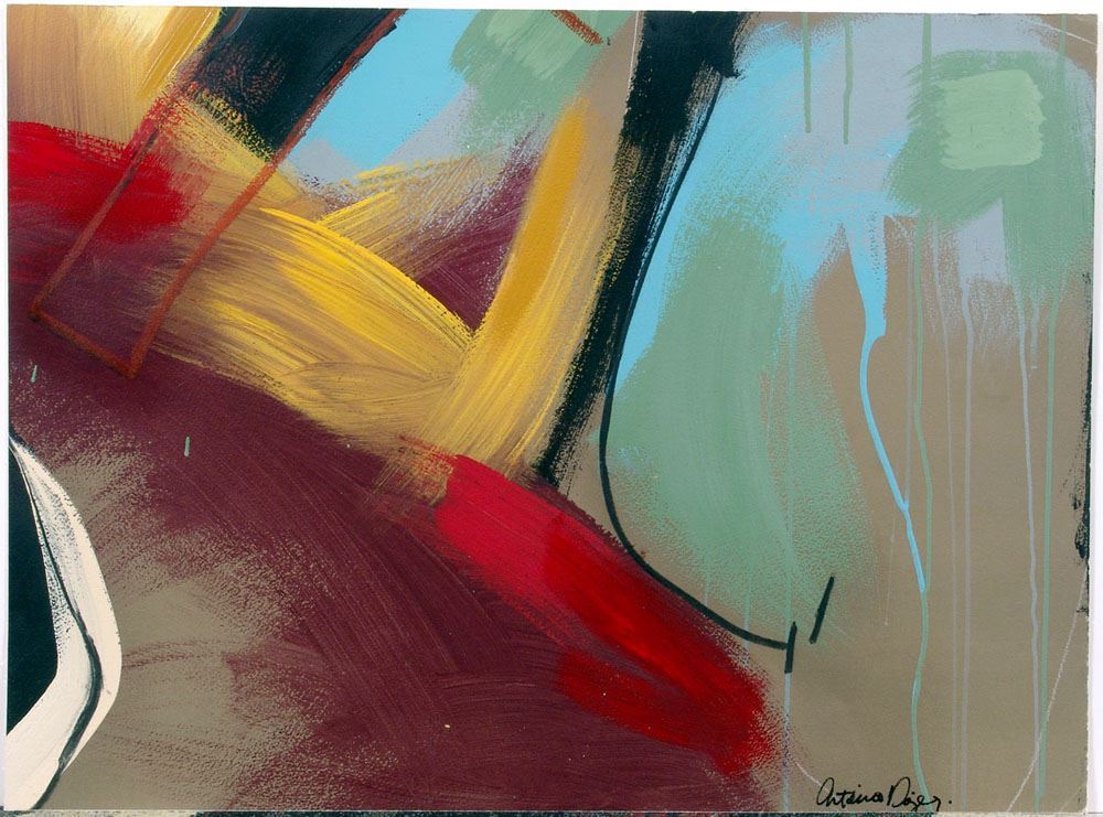 This is an original abstract painting by Antonio Diaz. Hand-signed. SIZE: 26" x 19".