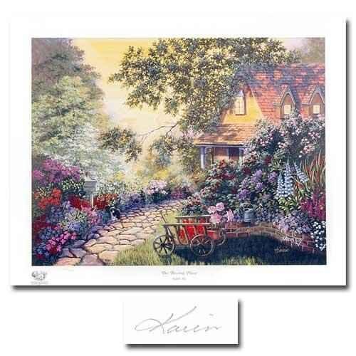 Karin Kis takes you to Fantastical and Dreamy locations straight out of a Children's Story! Who wouldn't want to take this cobble stone path up to the door of this Endearing Dollhouse! Measures: 19.00 X 23.00 inches. "Resting Place" is a LIMITED EDITION Lithograph that is Hand Signed by Kis, and comes with a Certificate of Authenticity! Retail price is:$750