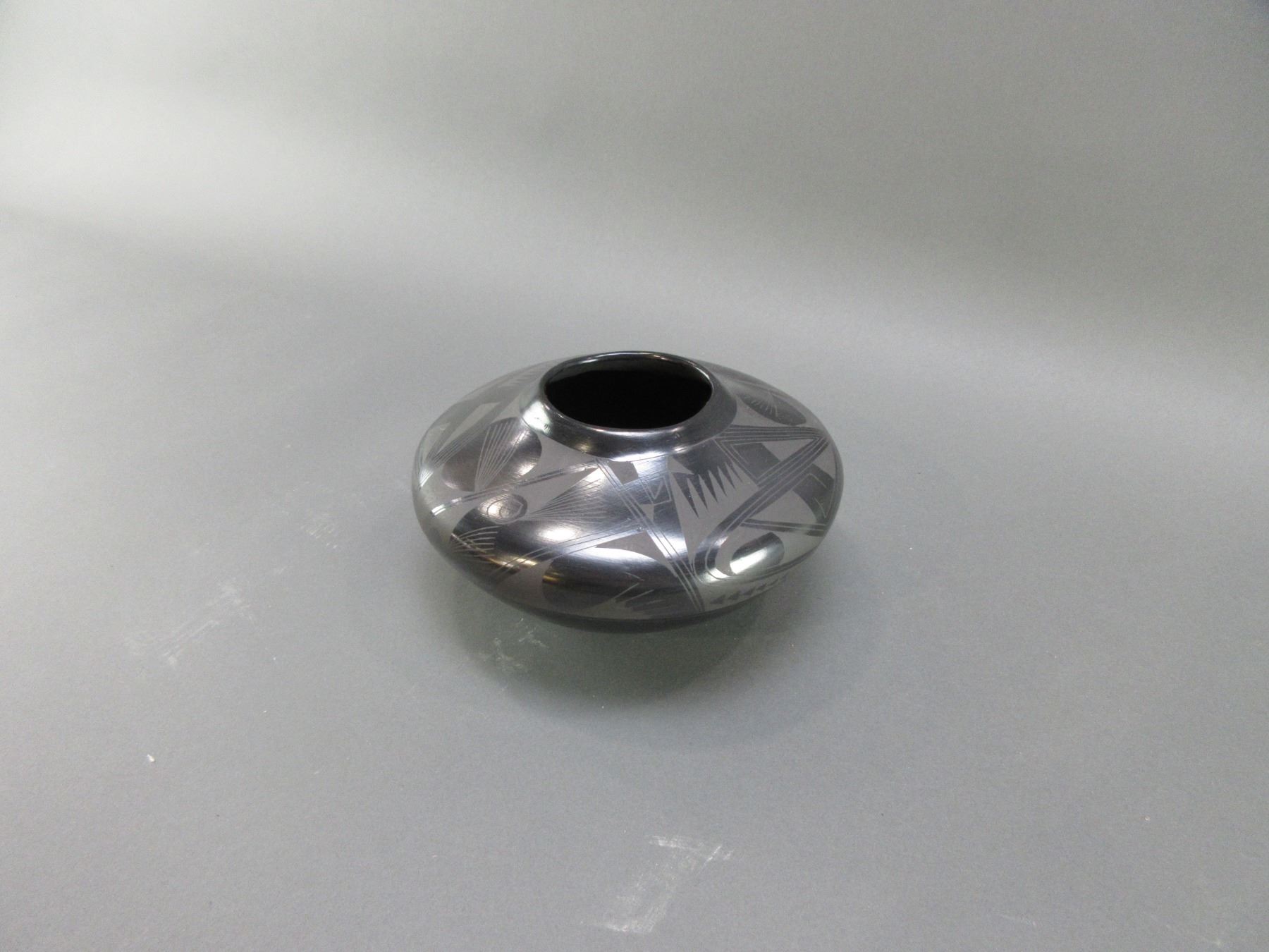 Original Signed Manual B Reyes Black On Black Pot- 4.5" X 7"